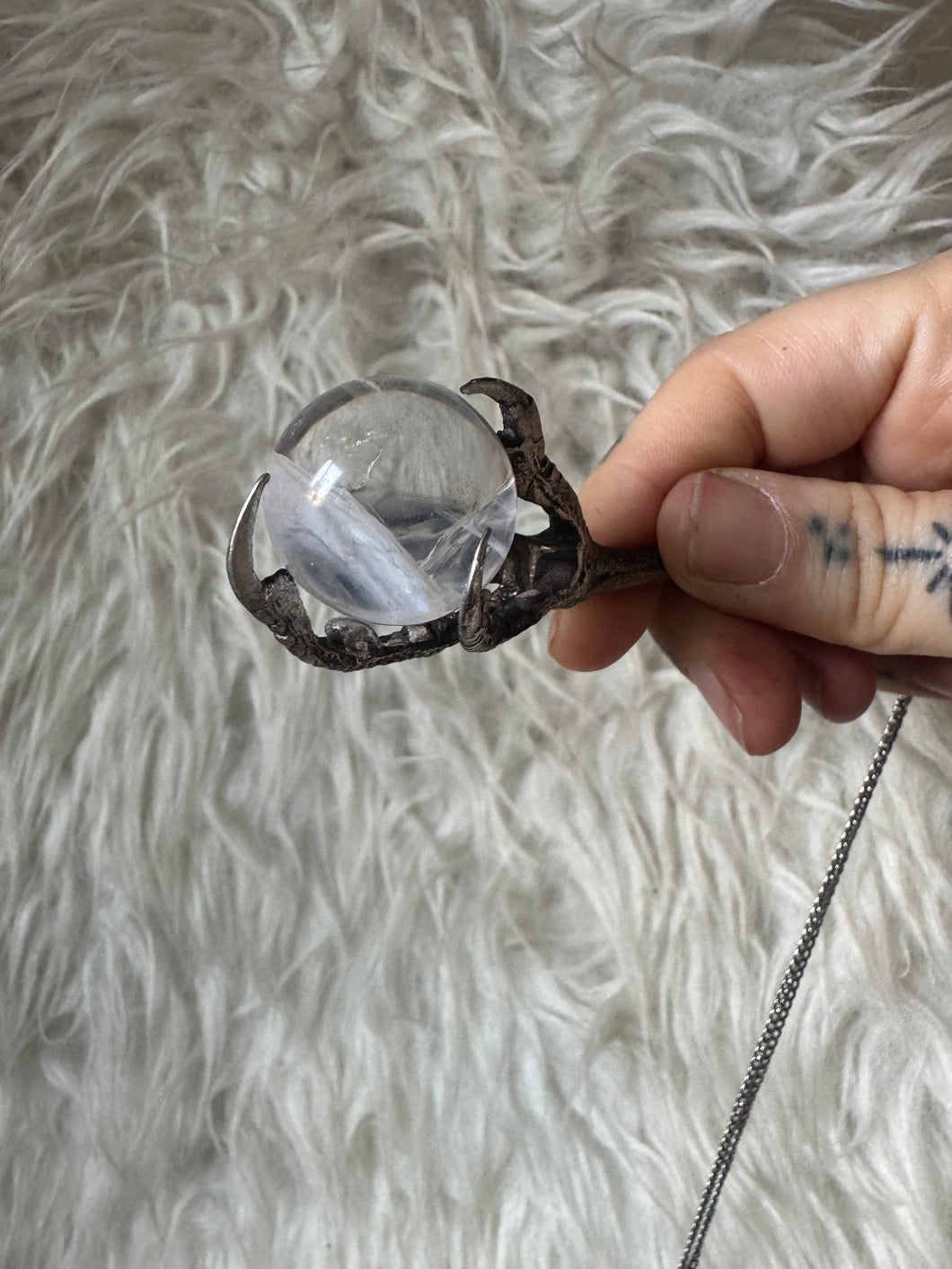 Real hawk talon holding quartz. chain can be changed on request