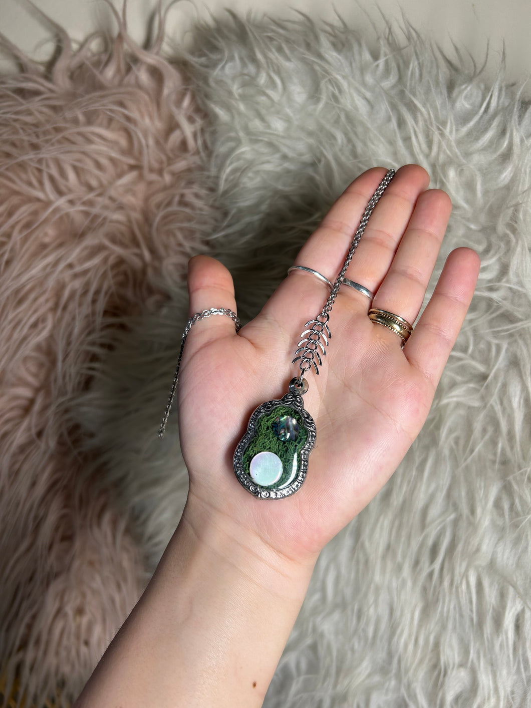 raccoon claw with pearl and abalone coins